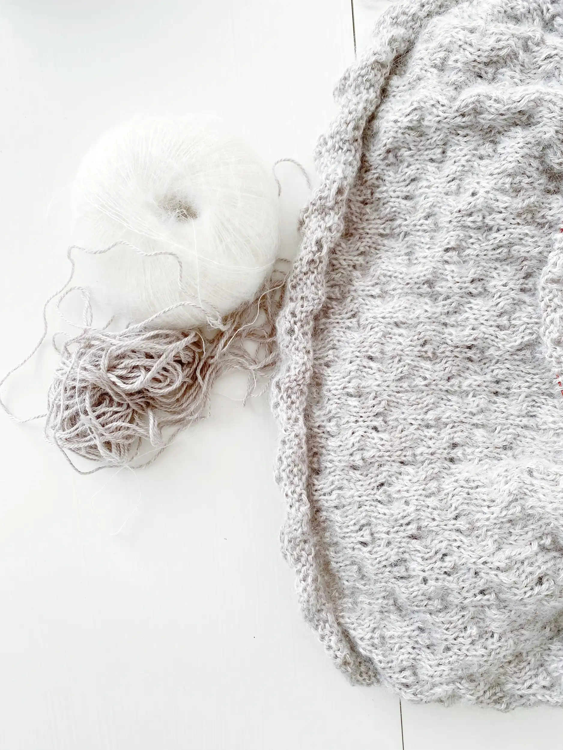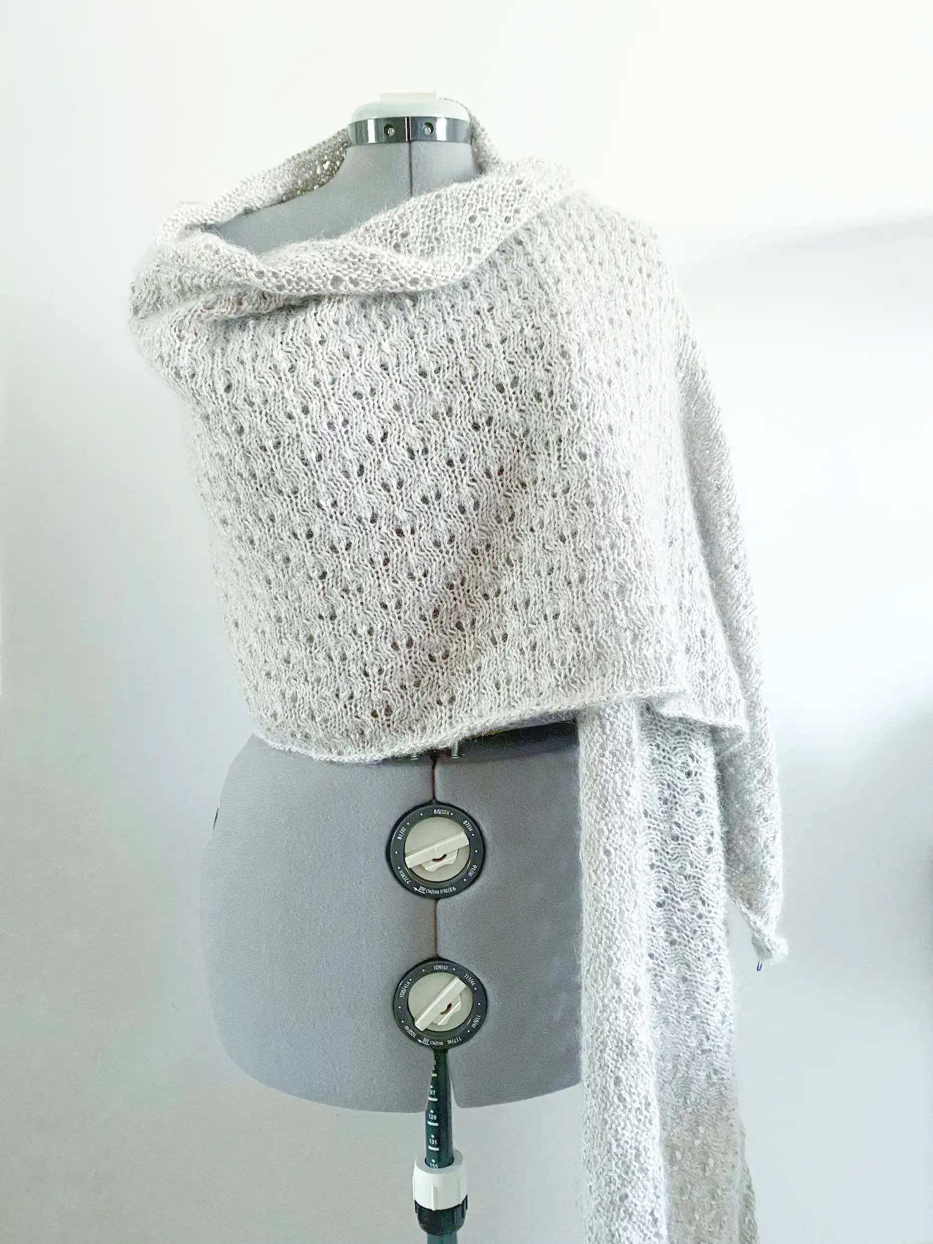 Está tejido a doble hebra combinando Alpaca Silk y Kid Silk de Hobbii, creando una estola muy abrigada a la vez que ligera. y mohair de Feliz y Punto que le dan una caída y una suavidad espectacular al chal. Está diseñada para que pueda acompañarte en tu día a día o incluso en eventos especiales que necesites ese aporte extra de abrigo sin renunciar a un complemento bonito, sencillo y lucido.
